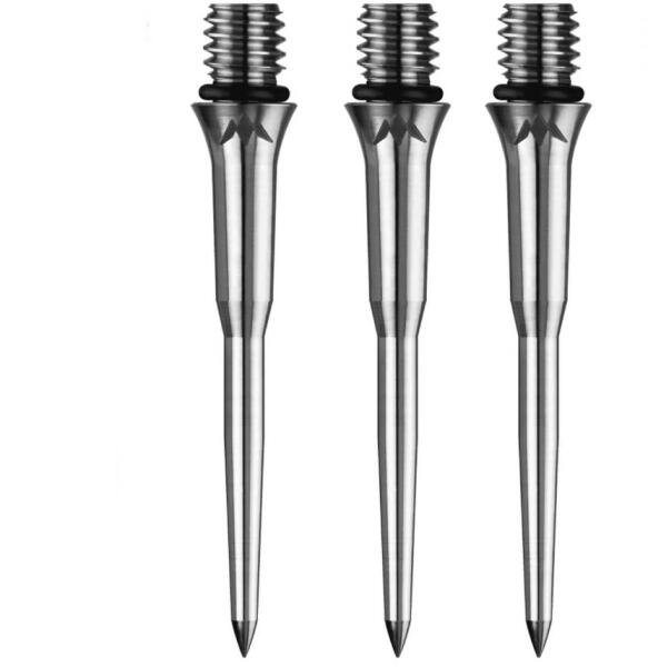 A Mission Titan Pro Ti Conversion Smooth Silver 30 mm   dart nyíl hegy  az eredeti puha dartsokhoz. A 2BA menetnek köszönhetően könnyedén felhelyezheted őket egy puha hegyű dartsra, és azonnal készen állsz a  céltáblás játékra. A titán kialakításnak köszönhetően rendkívül erősek és kiváló korrózióállósággal rendelkeznek. Mindegyik ezüst bevonattal van befejezve.